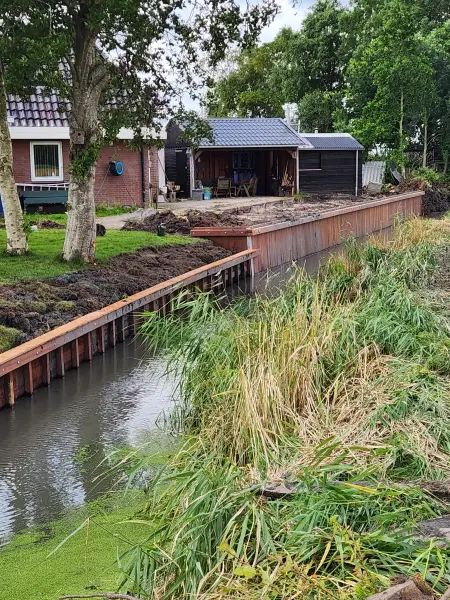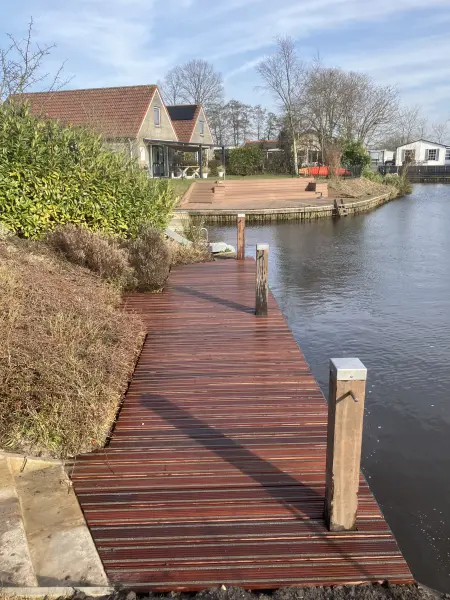 Bij Dijkstra Waterbouw laten we graag zien wat we doen. Op deze pagina vind je een selectie van onze recente projecten in Friesland en omgeving: van stevige damwanden en duurzame walbeschoeiingen tot stijlvolle vlonders, praktische aanlegsteigers en bruggen. Elk project is maatwerk, uitgevoerd met oog voor detail en gebruik van duurzame materialen. Zo creëren we waterkanten die niet alleen functioneel en veilig zijn, maar ook een mooie meerwaarde geven aan tuin, erf of landschap.