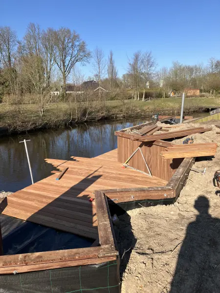 Bij Dijkstra Waterbouw laten we graag zien wat we doen. Op deze pagina vind je een selectie van onze recente projecten in Friesland en omgeving: van stevige damwanden en duurzame walbeschoeiingen tot stijlvolle vlonders, praktische aanlegsteigers en bruggen. Elk project is maatwerk, uitgevoerd met oog voor detail en gebruik van duurzame materialen. Zo creëren we waterkanten die niet alleen functioneel en veilig zijn, maar ook een mooie meerwaarde geven aan tuin, erf of landschap.